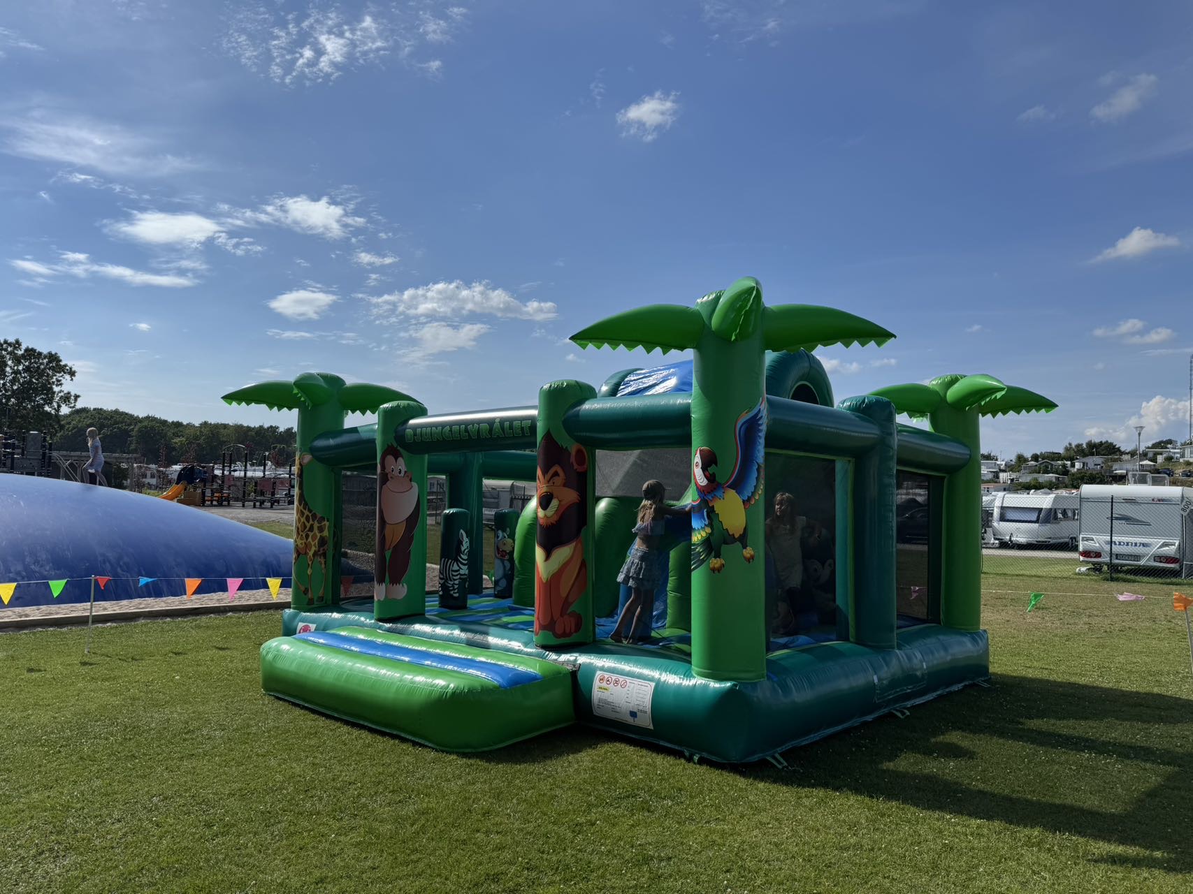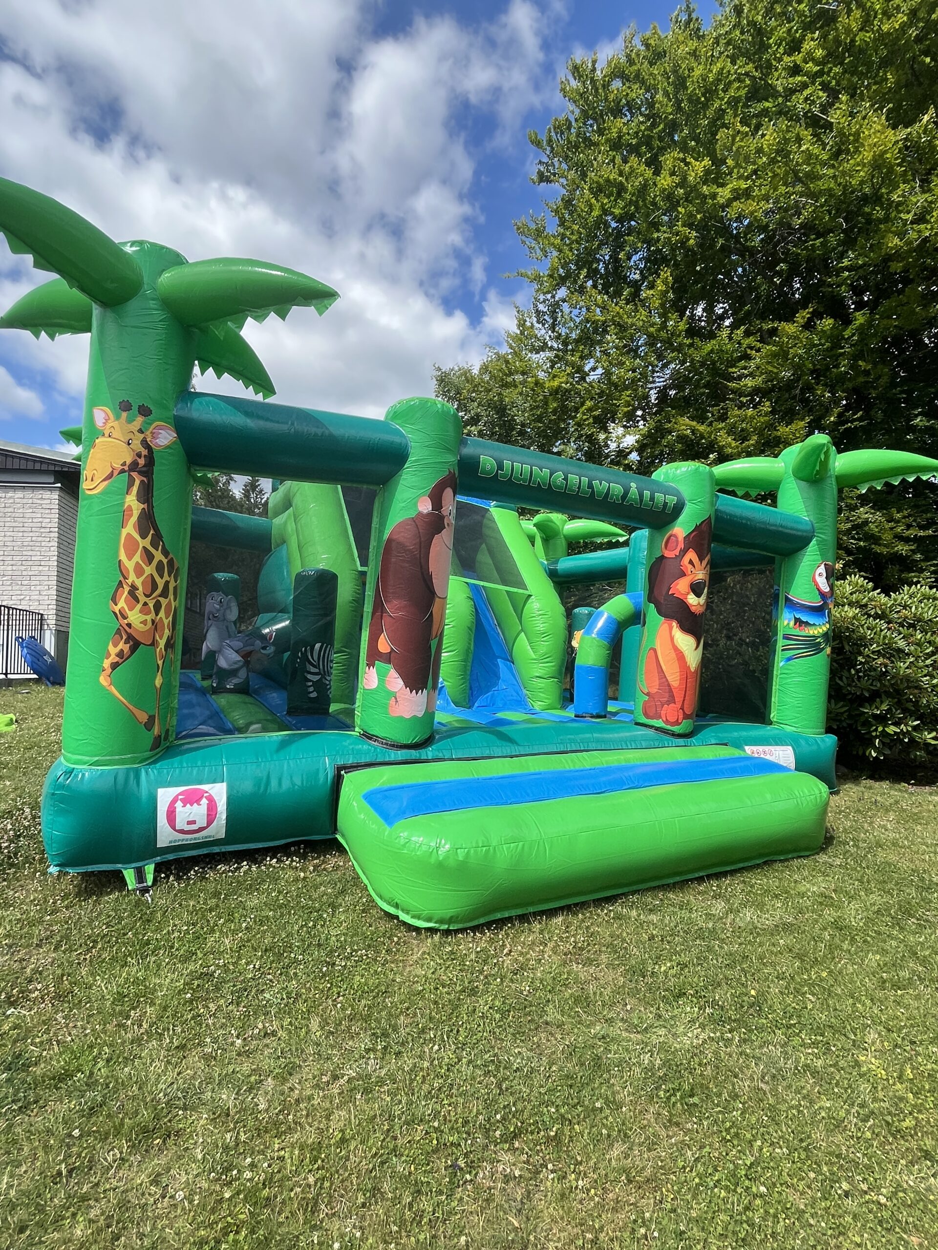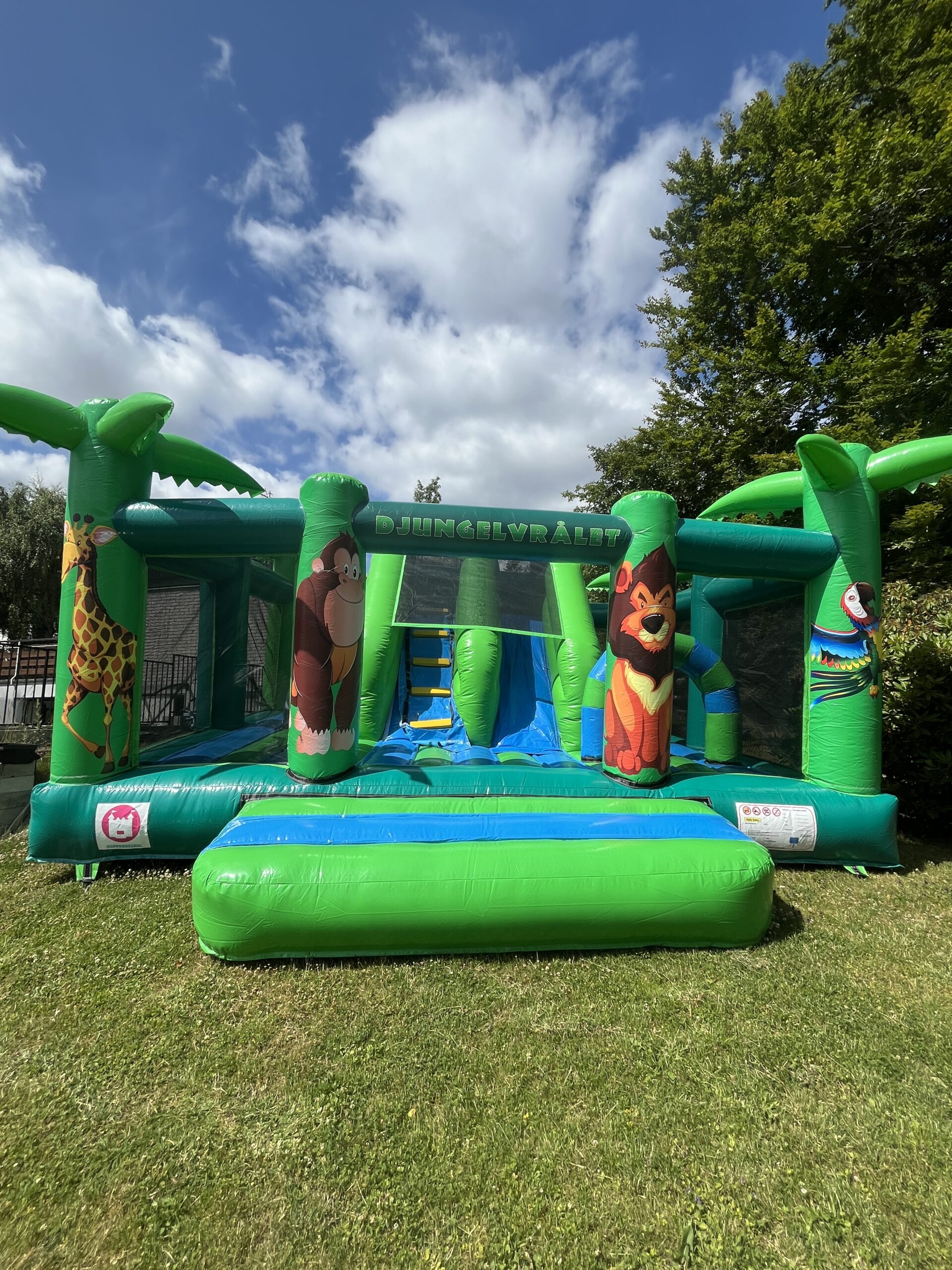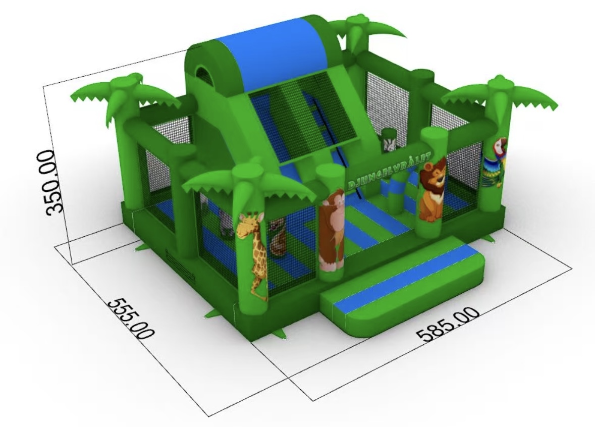 Denna hoppborg har både en större hoppyta och en kul rutschkana. Hoppborgen har ett bra flöde och bra översyn eftersom den är väldigt öppen och inbjudande. Med sitt genomgående djungeltema gör den sig perfekt på tema-event med även tillsammans med andra hoppborgar.