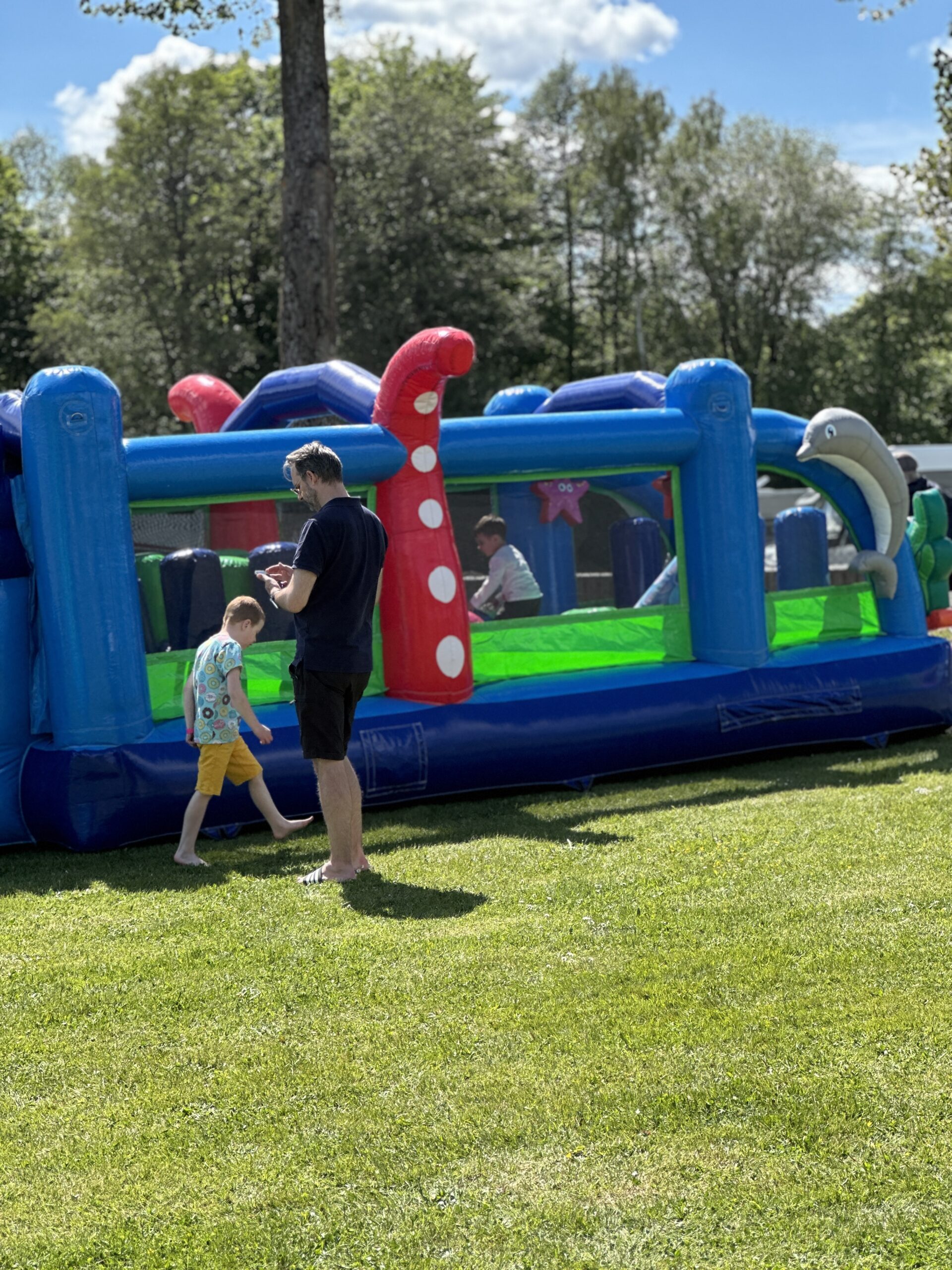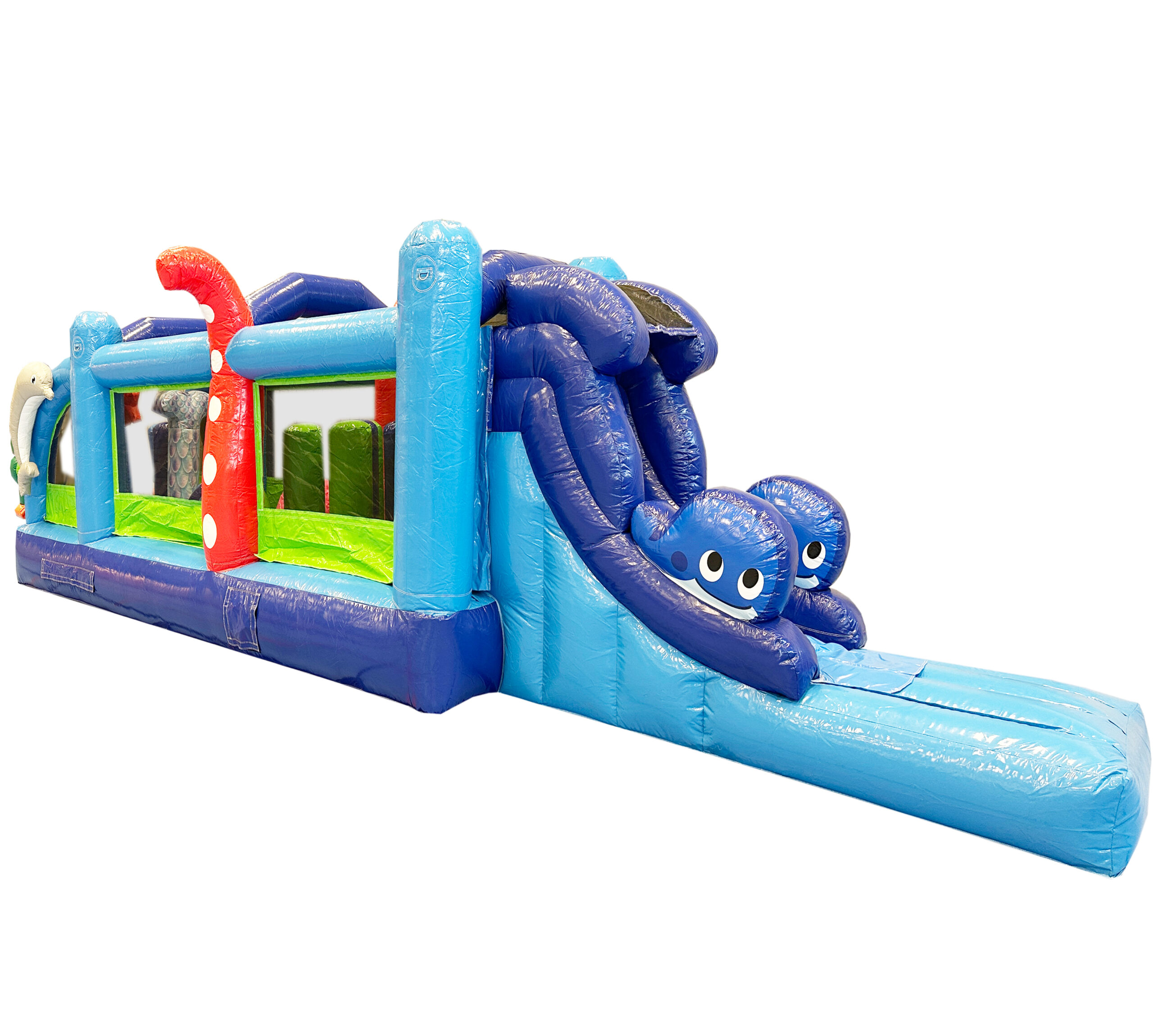 Havshinderbanan är en färgglad och rolig upplevelse full med havstemahinder och som avslutas med en kul rutschkana.