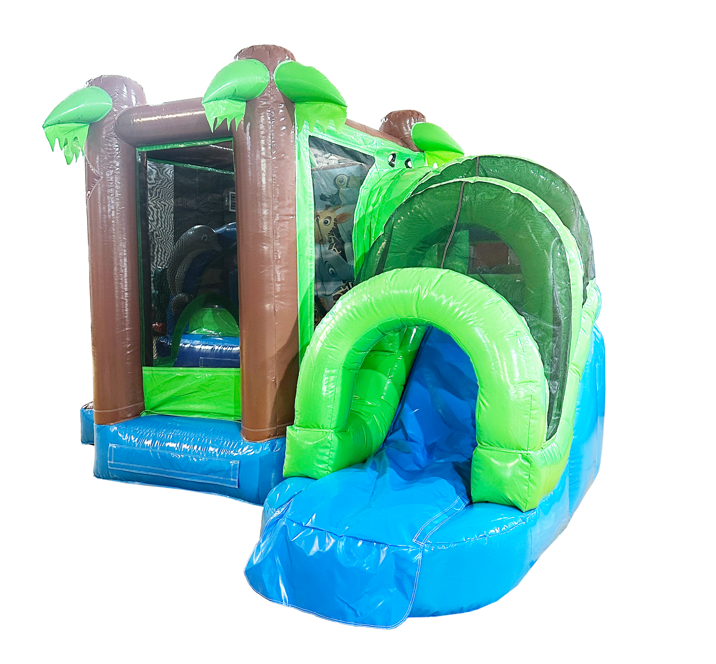 En hoppborg startar med en mindre hoppyta som följs upp med en större kul rutschkana. En kul utmaning för de mindre barnen med bra flöde! Passar även bra att kombinera med en större hoppborg.